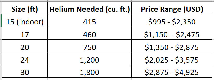 -Helium costs (varies by blimp size)